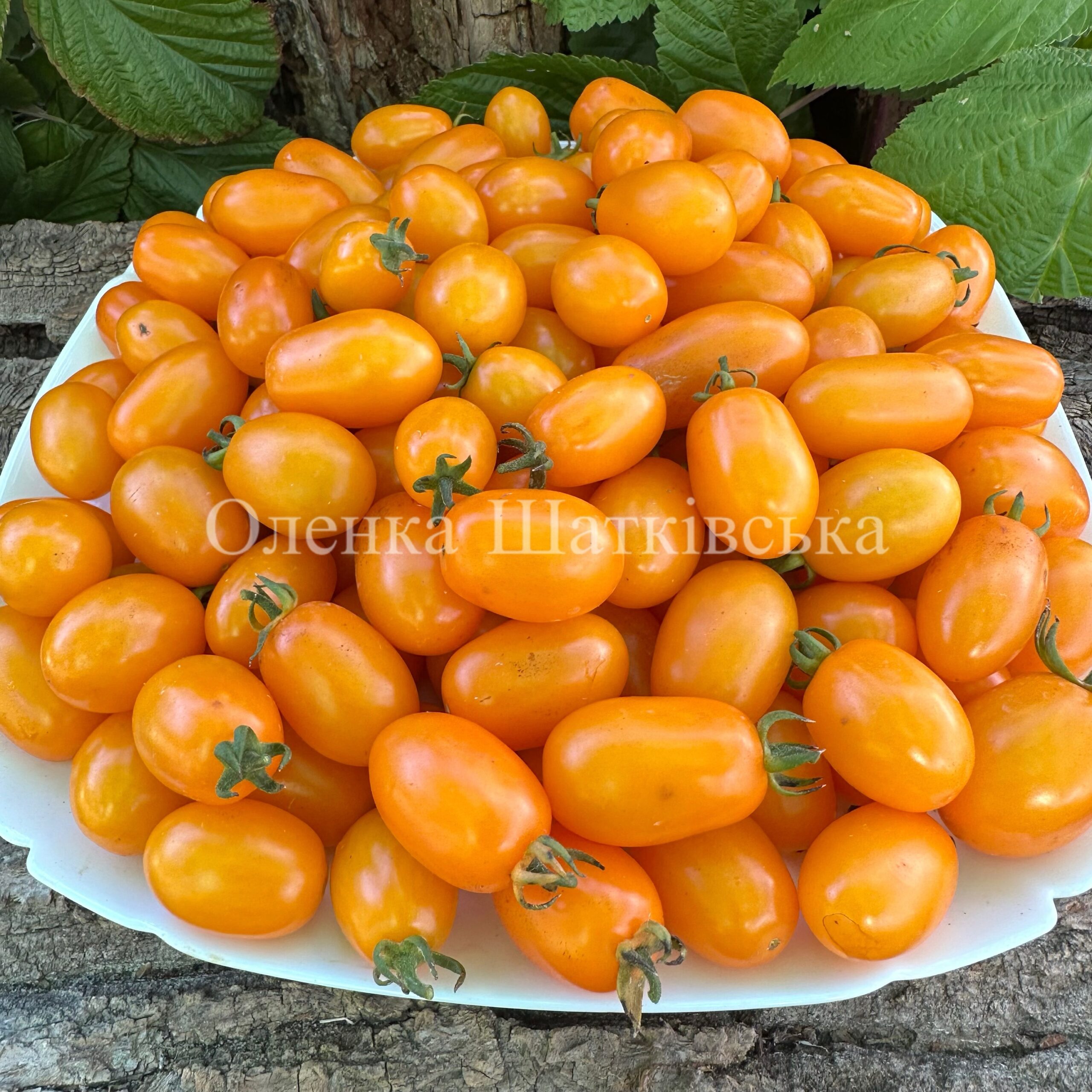Індетермінантний, середньоранній, високоврожайний, кущ 1,5–1,8 м. Плоди ростуть видовженими китицями, в кожній з яких до 16 штук, частина китиць спарена. Плоди – видовжені сливки жовто-золотистого кольору, вагою до 20 г., тверді, хрусткі, лежкі. Ароматні, смак відмінний, дуже солодкий, кислинка легка. Автор сорту Олексій Кулик . Універсального призначення.