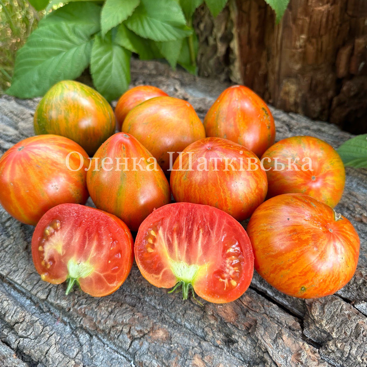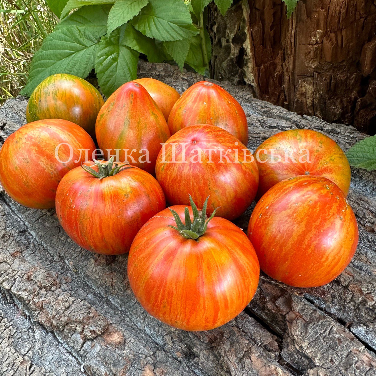 Карлик Крапчасте Серце ( Dwarf Speckled Heart ), середньоранній дуже врожайний сорт. Кущ заввишки близько 60-70см, лист звичайний, зморшкуватий. Плоди яскраві та дуже красиві: серцеподібної форми, зазвичай – зі злегка витягнутим носиком, ало-червоного кольору із золотими смугами, масою 150-250г. Томати м’ясисті, помірно щільні, ароматні, чудово збалансований смак. Ідеальні для приготування соусів, бутербродів та салатів.