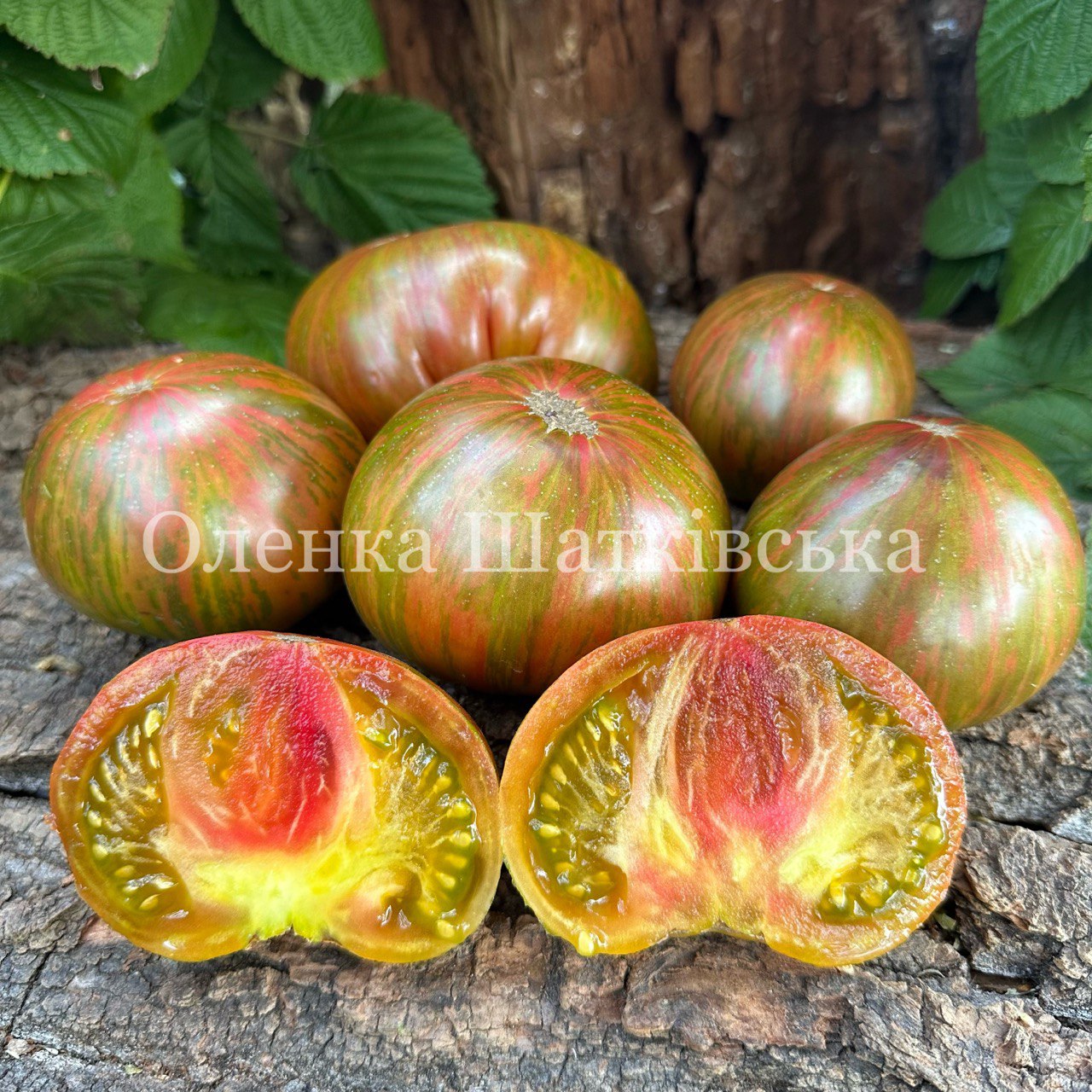 Середньостиглий. Рослина висотою близько 0,6-0,8 м, листя велике, зморшкувате, звичайного типу. Формує плоди плоскокруглої форми, яскравого смугастого забарвлення, на зеленому тлі червоні смужки середньою масою 160-240г. М’якуш соковитий, жовтувато-зелений з рожевим ядром у центрі. Гарний, солодкий смак. Рекомендується вживати в міру визрілими, плоди, що перезріли, втрачають свої смакові якості