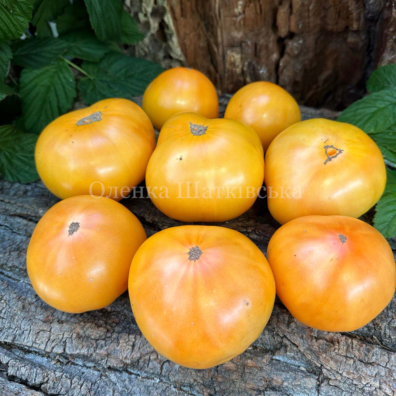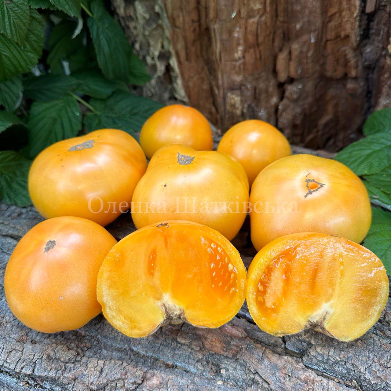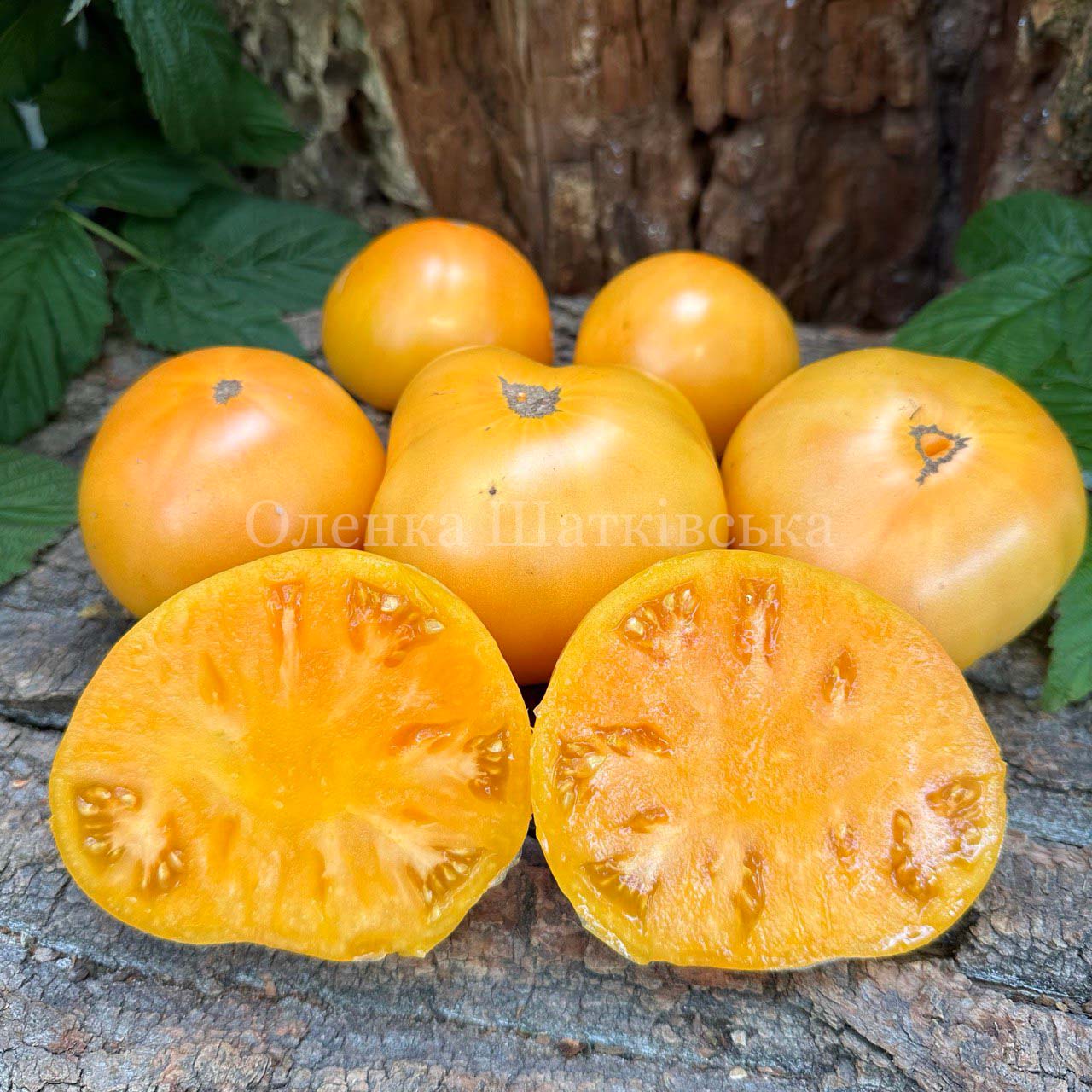 Середньостиглий, досить врожайний. Кущ заввишки 0,8–1 м, лист картопляного типу. Плоди рівні та гладкі, плоскоокруглої форми, красиві, яскраво-оранжевого кольору, масою 130–250 г (до 300 г). Томати помірно щільні, з густою мармеладною м’якоттю, мають відмінний, насичений, солодкий з кислинкою смак і злегка терпкий інтенсивний аромат.