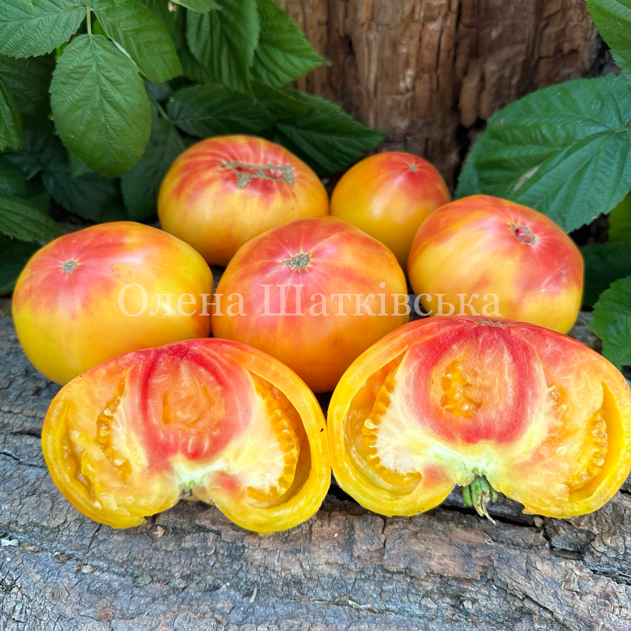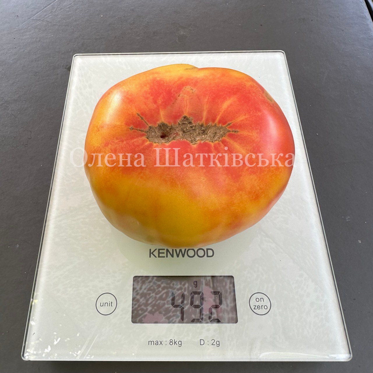 Індетермінантний, середньостиглий, високоврожайний, кущ до 2-х метрів. Плоди плоскоокруглі салатного типу, масою 300-1кг.