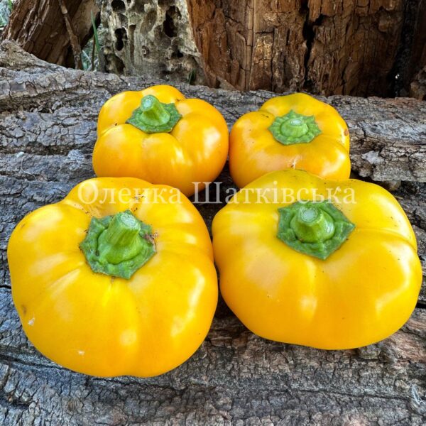 Середньостиглий, врожайний, кущ 60 см. Плоди жовто-помаранчевого кольору, вагою 150-200 г, товщина стінки 8-10 мм.