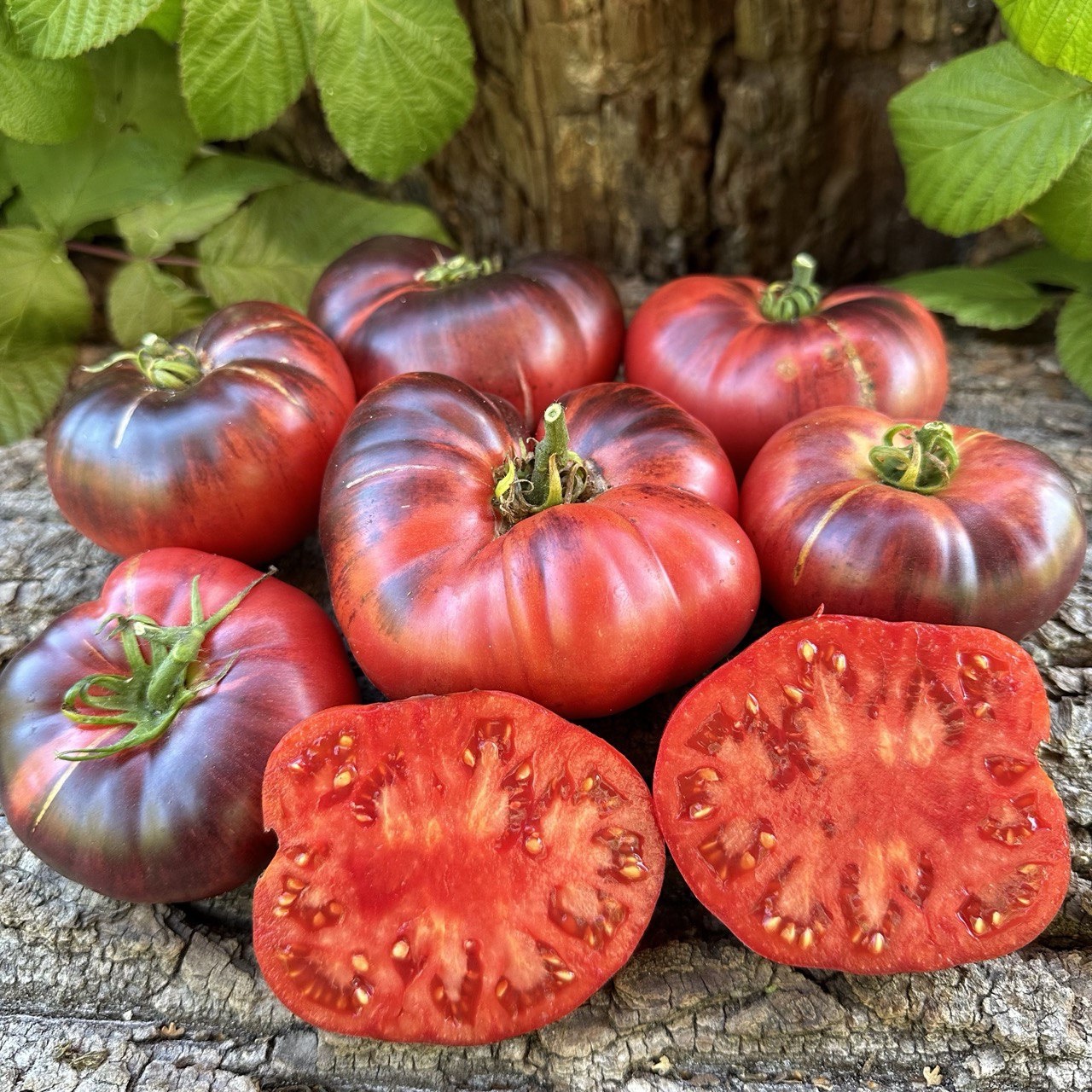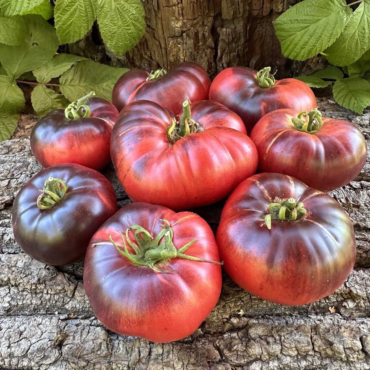 рожеві з синіми штрихами на плічках, зібрані в кисті по 4-5 шт. Інтенсивність антоціана у фарбуванні залежить від кількості сонячного світла, що потрапляє на плоди. Солодкі з легкою кислинкою, томатний аромат з фруктовими нотками. Щільні, соковита м’якоть, масляниста. Використовуються для споживання у свіжому вигляді та консервації.