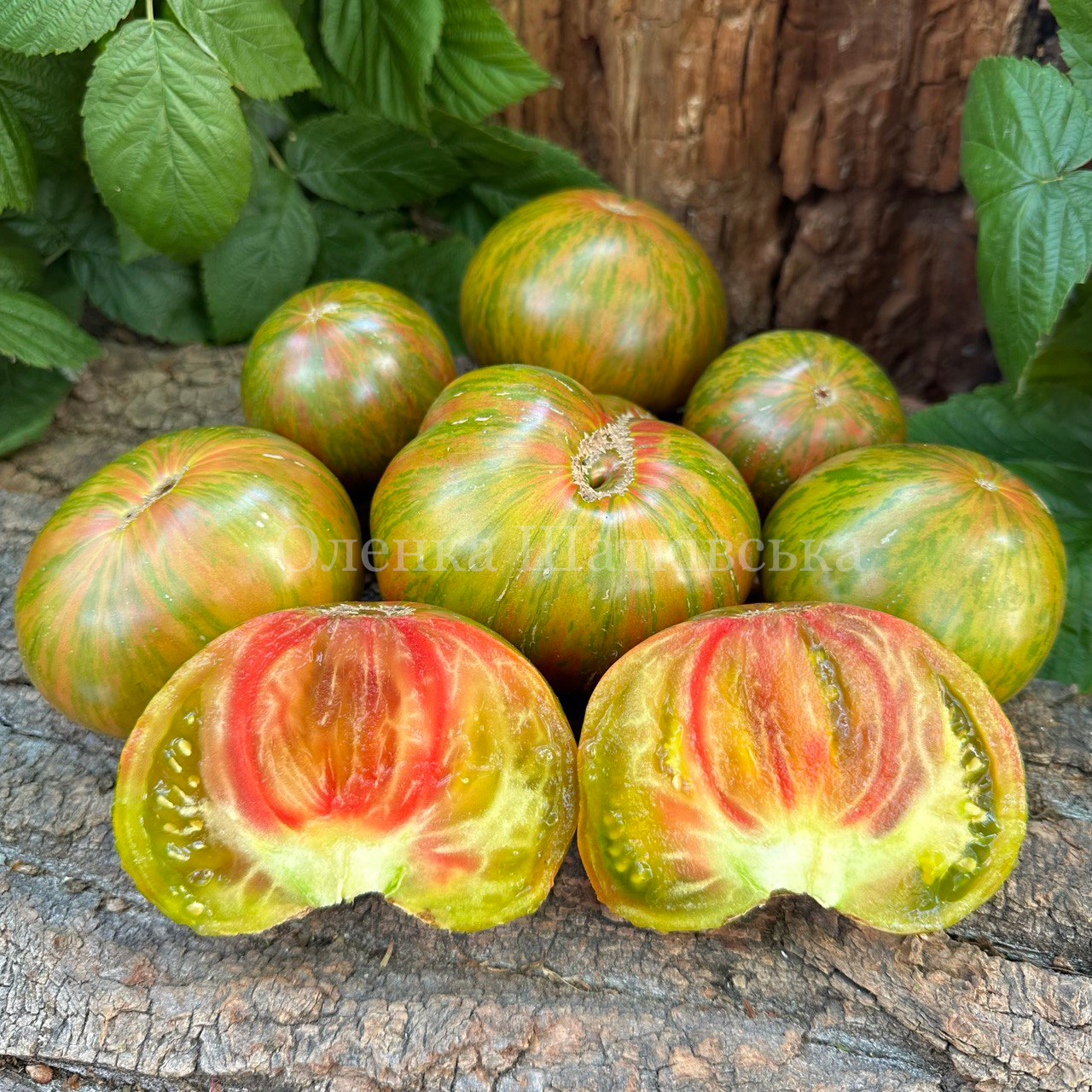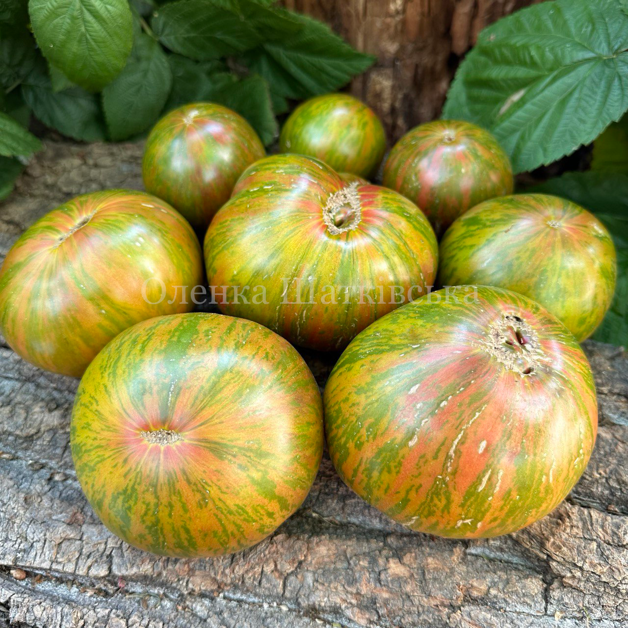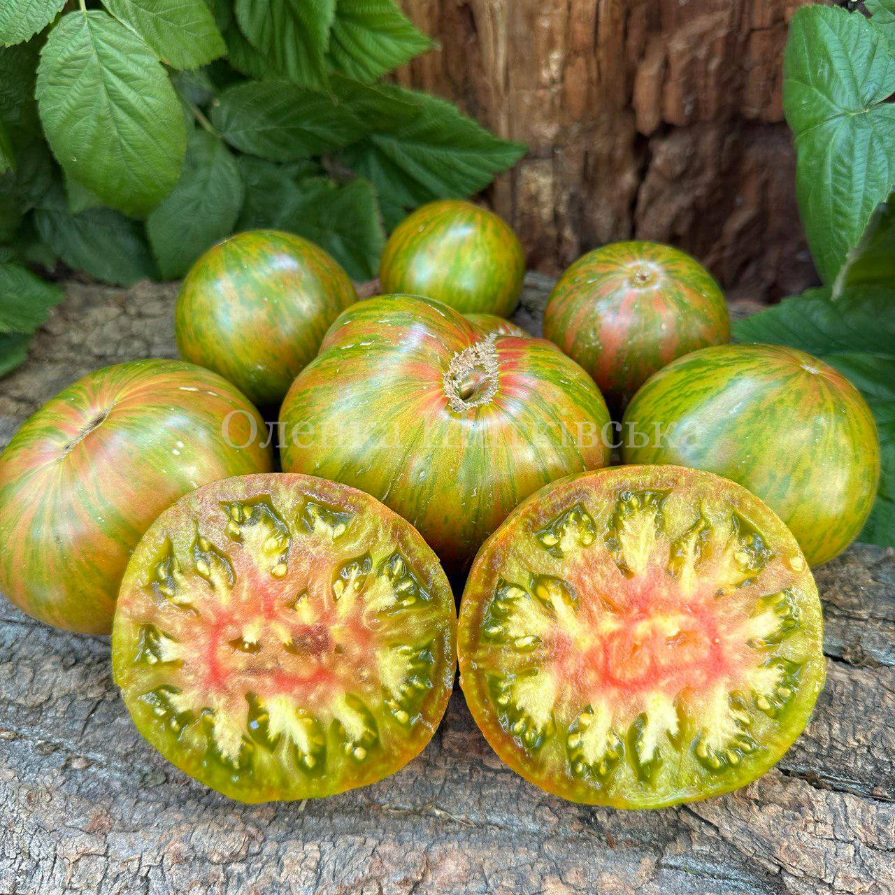 зелені та оливкові смуги. При розрізі середина рожева. Солодкі з легкою кислинкою з фруктовим присмаком. М’якуш маслянистий, соковитий. Для свіжих салатів.