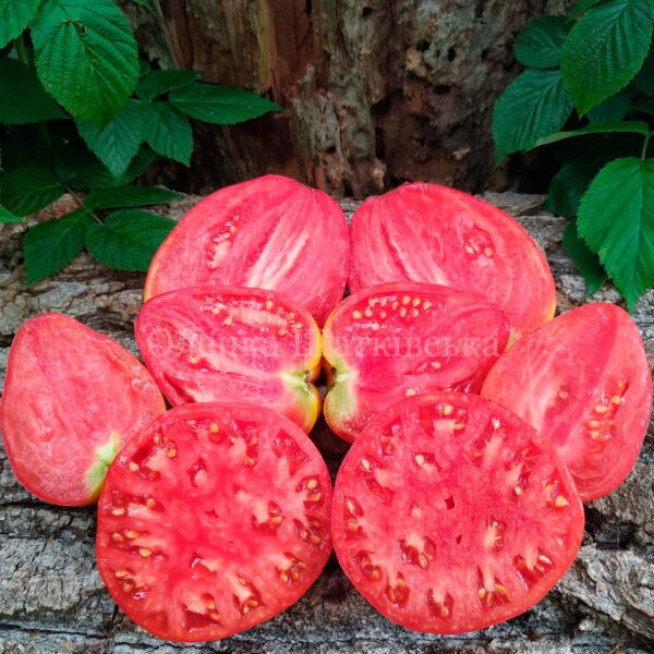 Ранньостиглий, високоврожайний, кущ тонкий висотою 70 см. Плоди гарного рожевого кольору, серцевидної форми, вагою 200-400 г. Шкірка тоненька. Смак сбалансований, солодкуватий. Для свіжих салатів.