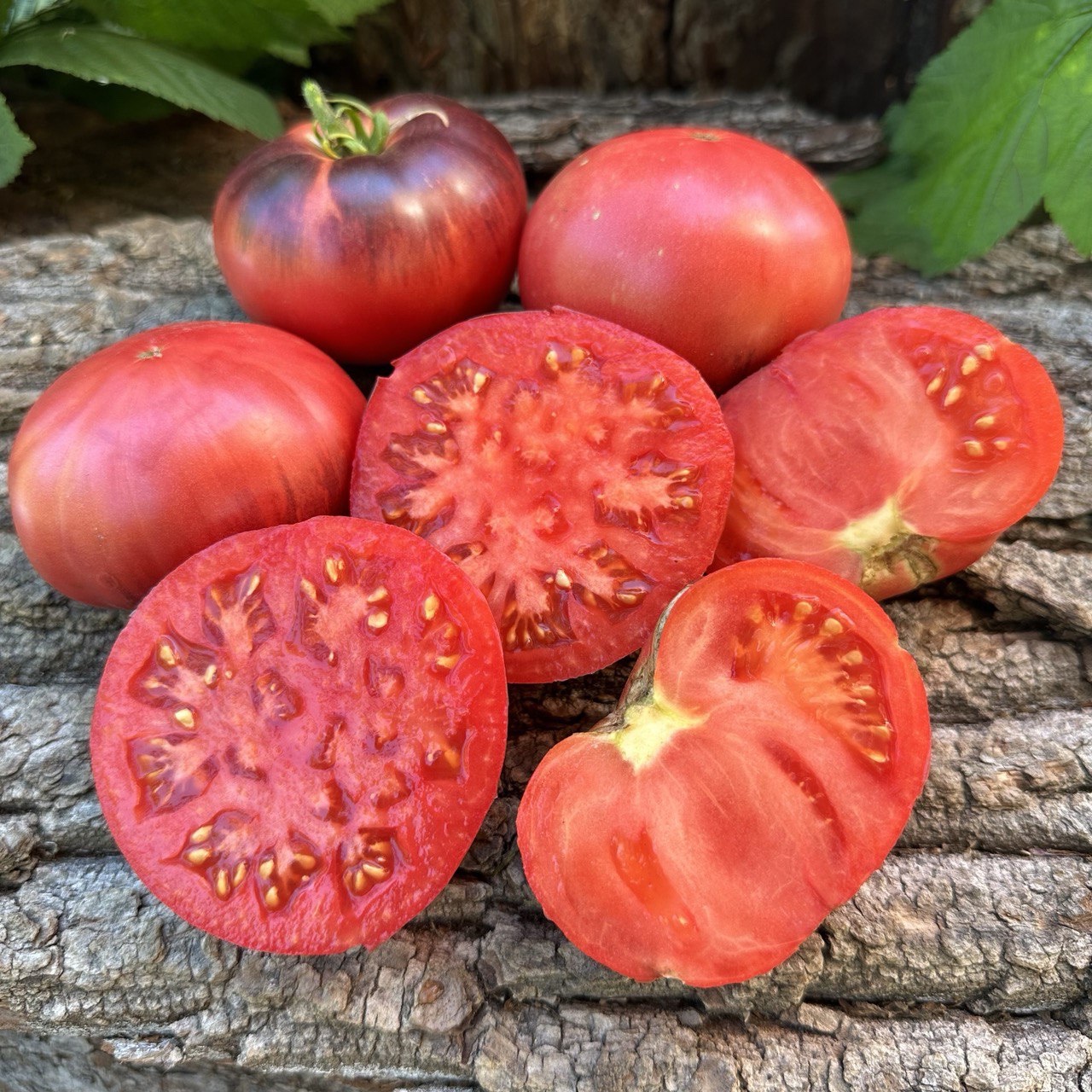 Індетермінантний, середньостиглий, кущ 1,8 м. Плоди плоскоокруглої форми, вагою 100 —250 г, у стадії зрілості дуже гарні – малинові знизу і чорно-фіолетові (іноді пурпурні) до плодоніжки зверху, дуже гарного смаку. Для свіжого споживання, салатів, соків, соусів.