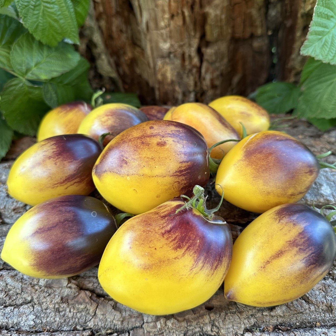 Індетермінантний, середньостиглий, кущ до 2 м. Плоди сливовидної форми з носиком злегка витягнуті, вагою 150-250 г, жовтого кольору з антоціановими плічками, щільні, соковиті, солодкі, дуже смачні. Для свіжого споживання, салатів та дієтичного харчування.