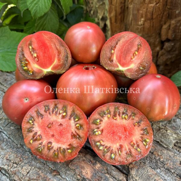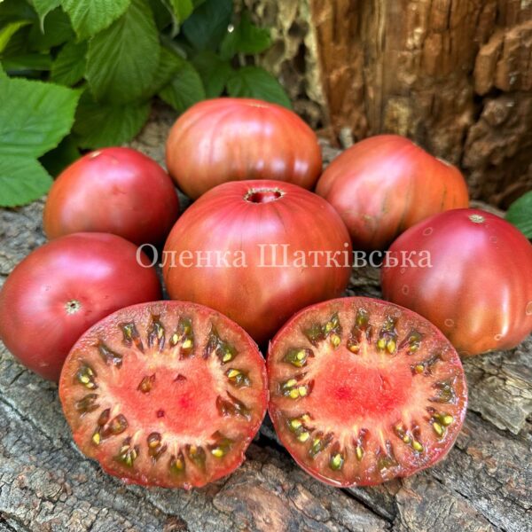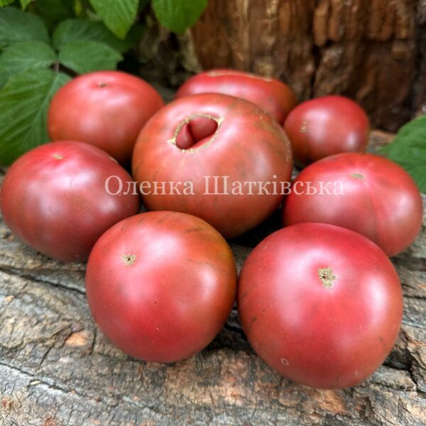 Плоди плоскоокруглої форми з зібраними плечиками, темно-бордові, вагою 300-500 грам. Дуже гарні та смачні. Смак насичений, солодкуватий, м’якуш соковитий, щільний.