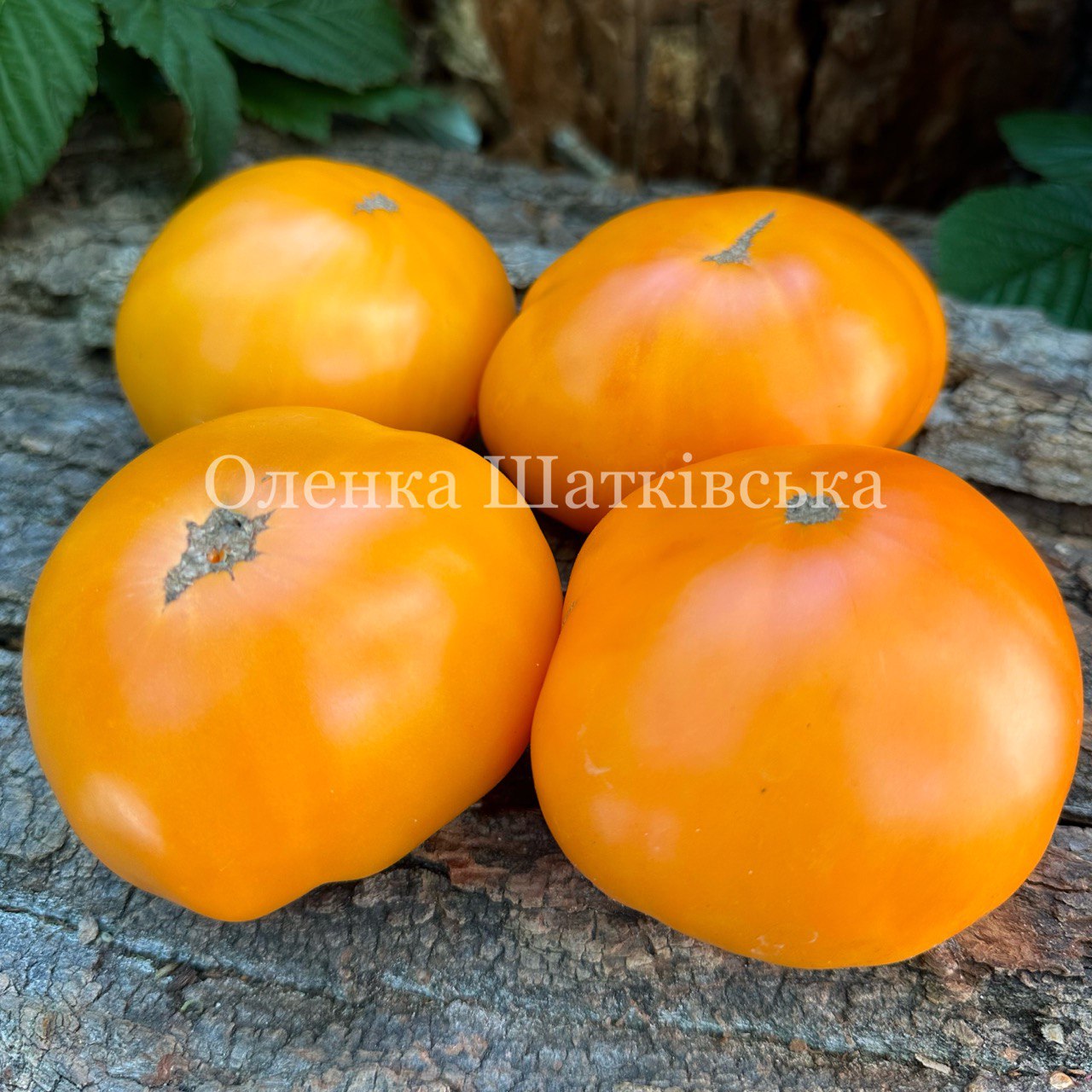 Індетермінантний, середньостиглий, кущ 1,8 м. Плоди світло-жовтогарячі, округло-серцеподібні, м’ясисті, дуже смачні, солодкі, вагою 300-500г. Відмінний високоврожайний сорт довгого періоду плодоношення. Для свіжого споживання, салатів та соків.