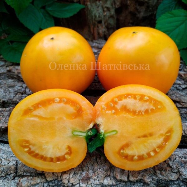 Індетермінантний, середньостиглий, кущ 1,8 м. Плоди рівної округлої форми, вагою 150-300 г., золотистого кольору. Смак солодкий з кислинкою, аромат насичений томатний, м’якуш м’ясистий. Для свіжих салатів, нарізки, соків, соусів.