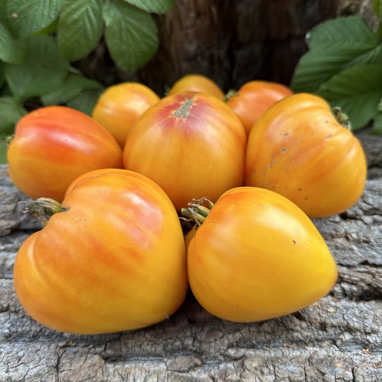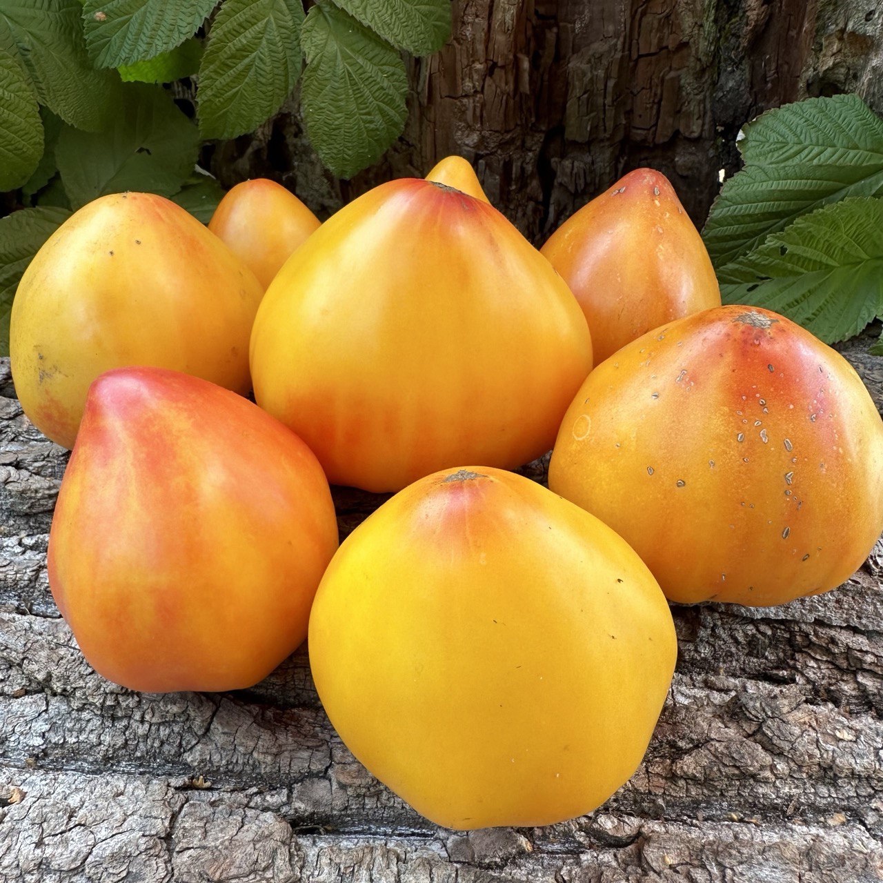 Індетермінант, середньостиглий, кущ 1,8 м. Плоди серцевидної форми, вагою 100-350 г, жовто-оранжевого кольору з малиновим румʼянцем. М’ясисті, соковиті, дуже солодкі, смачні. Врожайність вища за середню. Для свіжого споживання, салатів, соків.