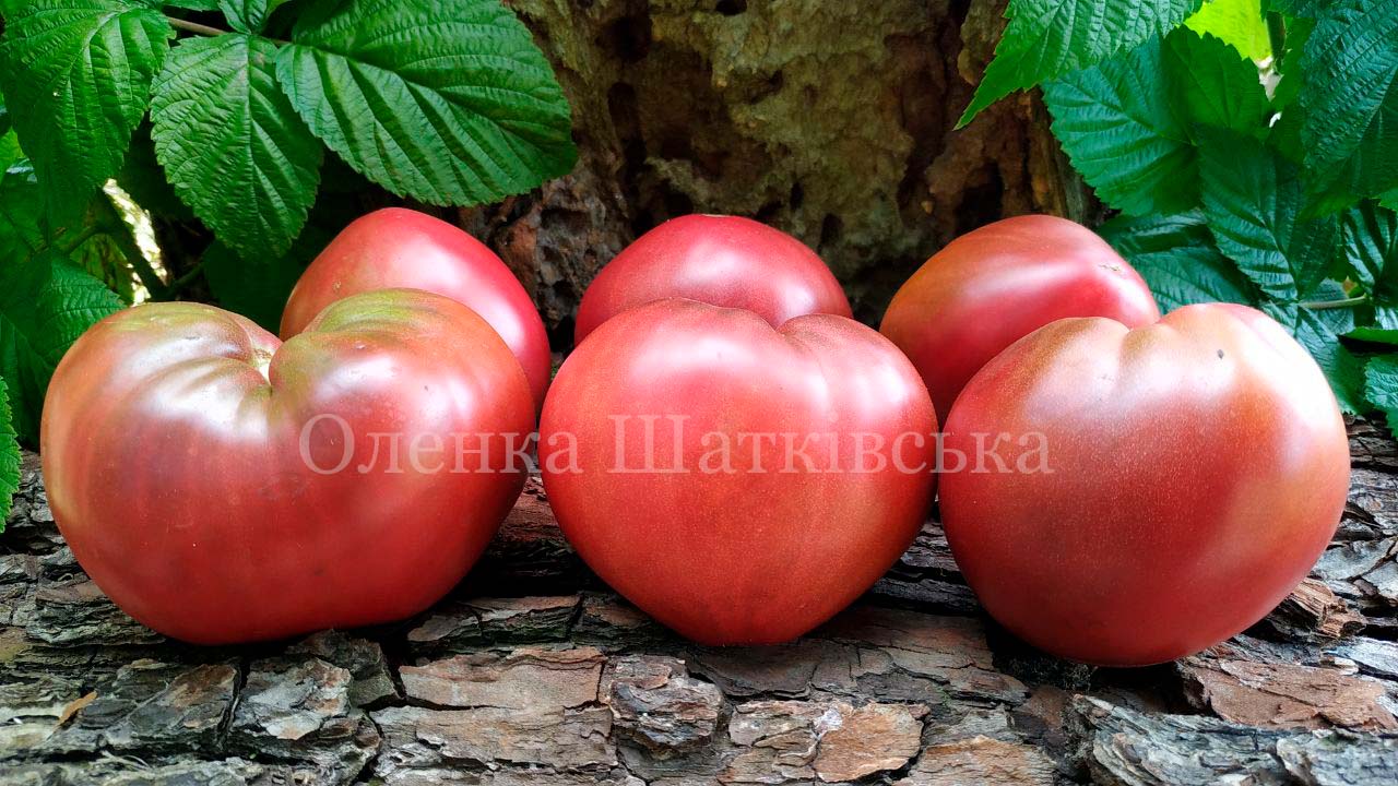 Плоди серцеподібної форми із гострим кінчиком, вагою 150-200 грам. Пурпурно – бордові, у розрізі темно-малинові. Смак солодкий з легкою кислинкою, томатний аромат.