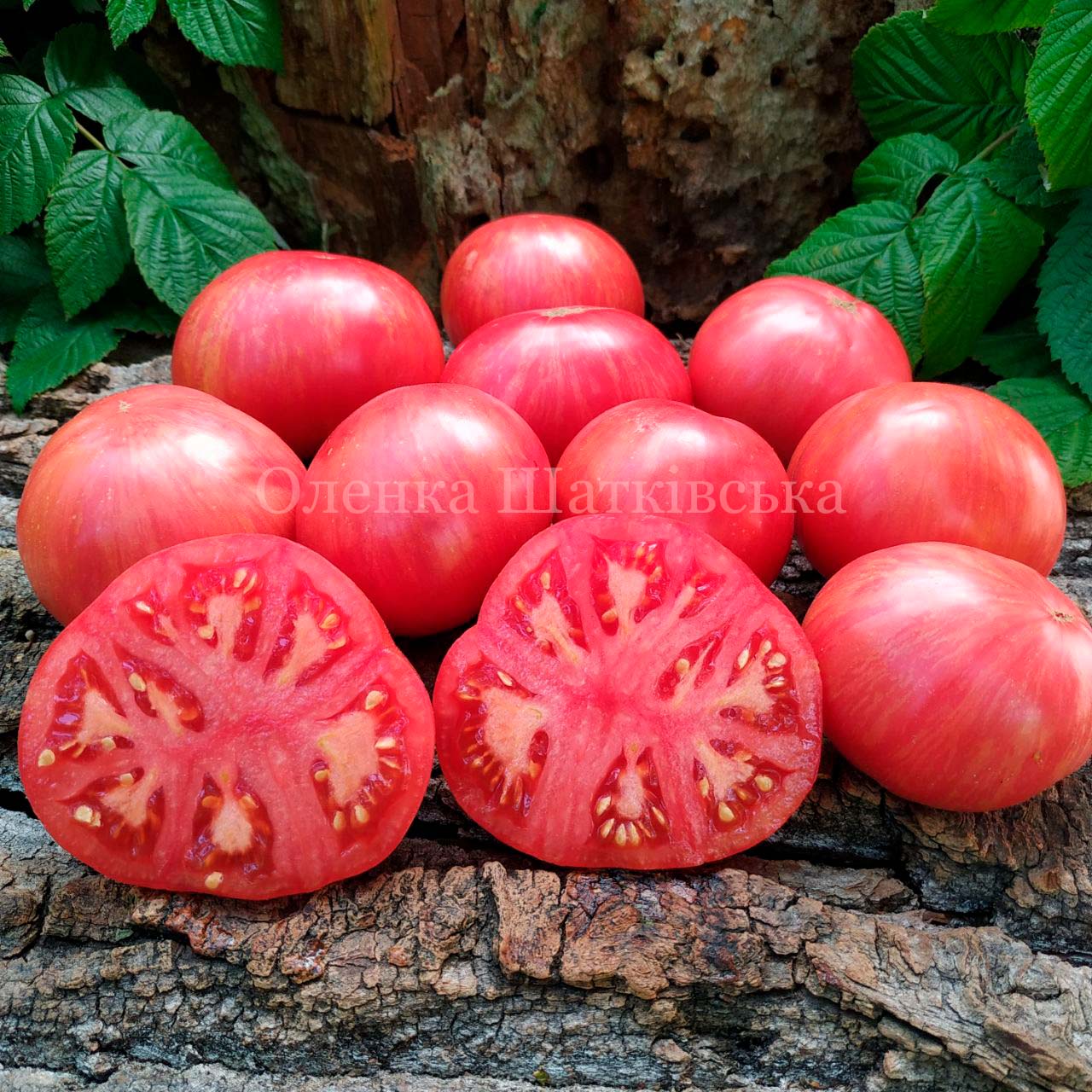 Детермінантний, середньостиглий, кущ до 1 м. Плоди приплющено-округлі, з неглибокими ребрами біля плодоніжки, вагою 100-200 г. салатного типу. Світло-рожевого кольору в тоненькі жовті смужки. Смак солодкий з кислинкою, м’якуш соковитий, маслянистий. Для свіжого споживання переробки на зиму.