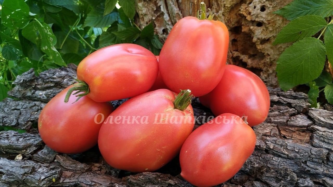 Індетермінантний, середньостиглий, дуже врожайний, кущ до 2 м. Плоди зібрані в кисті по 4-6 штук. Форма плодів – видовжені великі сливи, що нагадують за формою вуха осла. У стадії зрілості плоди червоно-малинові, вагою до 300 грам, дуже смачні, м’ясисті. Сорт салатного призначення також підійдуть для приготування соку.
