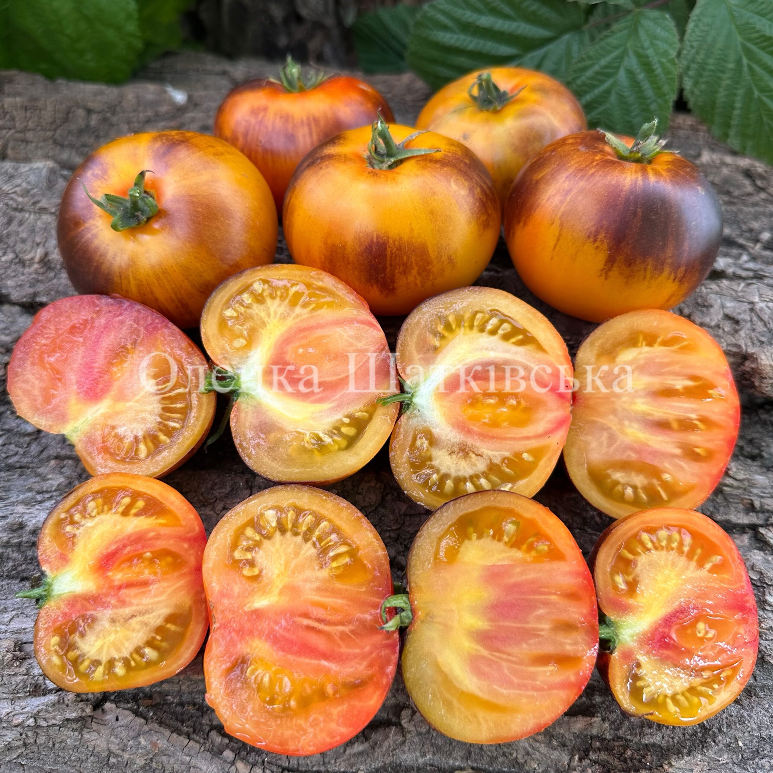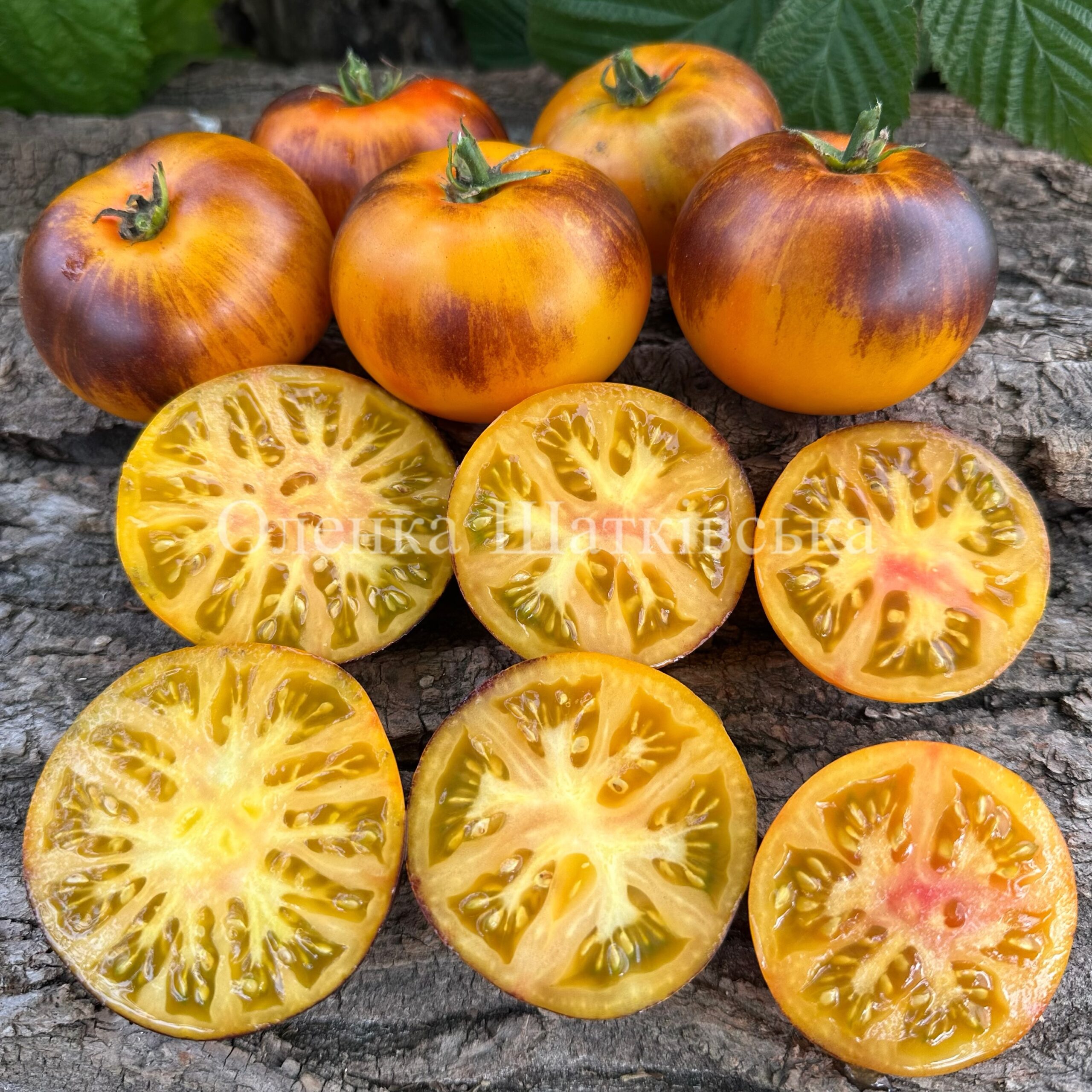 Індетермінантний, середньостиглий, кущ 1,8 м. Плоди плоскоокруглої форми, жовті з антоціановими плічками, чудового солодкого смаку, вагою 180-250г. Відмінний високоврожайний сорт. Для свіжого споживання, салатів.