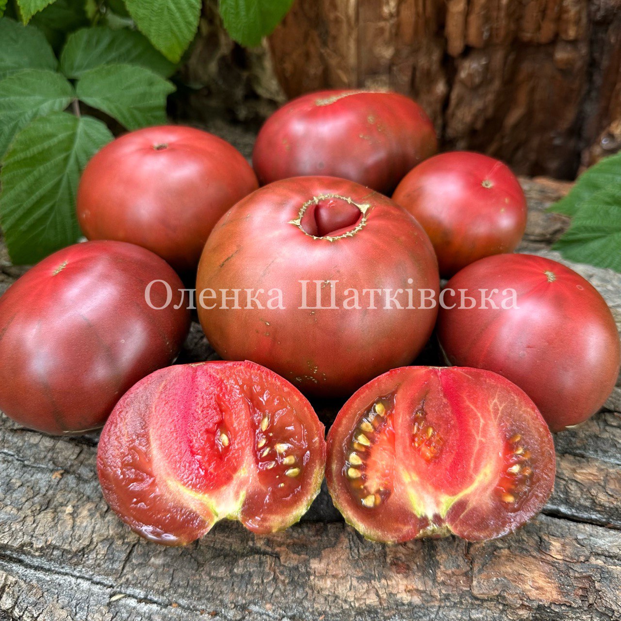 Томат Сара Чорна (Sara Black). Індетермінантний ,середньостиглий, кущ 1, 8 м. Плоди темно-бордово-коричневого кольору, плоскоокруглої форми, м’ясисті, солодкі, дуже ароматні, вагою 200-400 г. Врожайний.