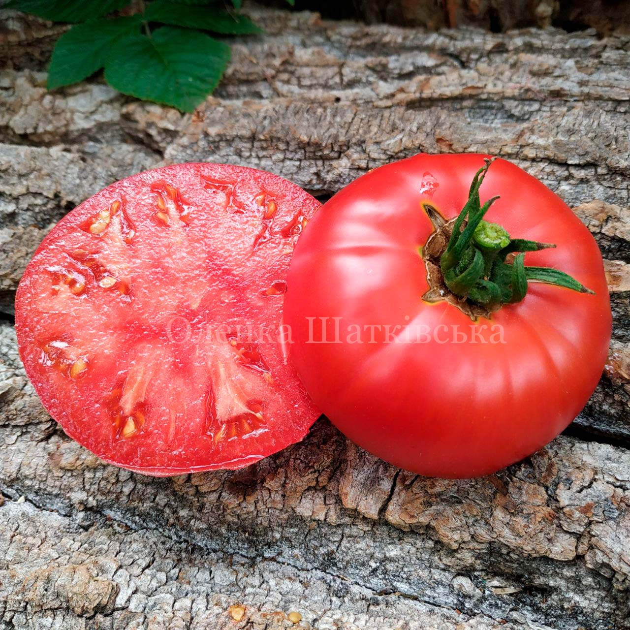 Плоди округлоприплюснутої форми, роздуті в ширину, злегка ребристі в плечиках, м’ясисті, рожево-малинового кольору, вагою 400-600 г, соковиті та ароматні.Смак солодкий, ніжний. Дуже смачні !!! Для свіжого споживання.