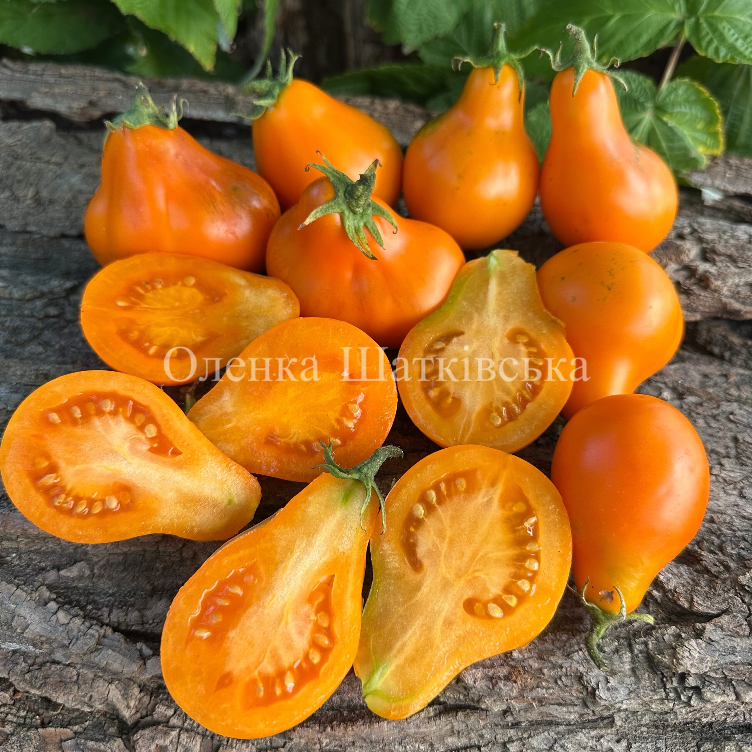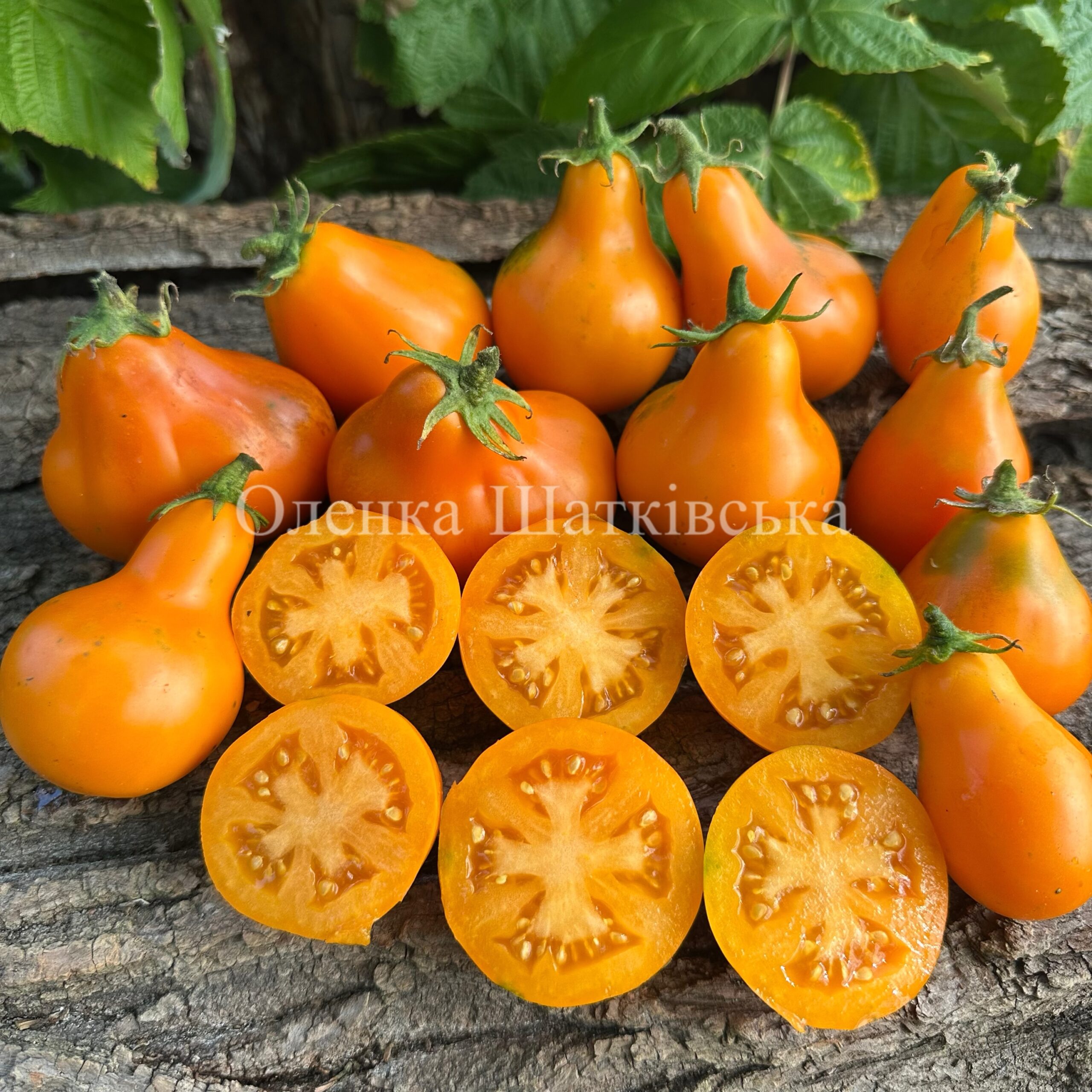 Середньорослий, середньостиглий, кущ 1,5 м. Плоди унікальної грушоподібної форми схожі на лампочку, насичено-жовтого кольору, вагою 100-120 грам. Смак солодкий, м’якуш щільний. Для свіжого споживання, салатів, консервування. Дуже смачні квашені. Рекомендую !!!