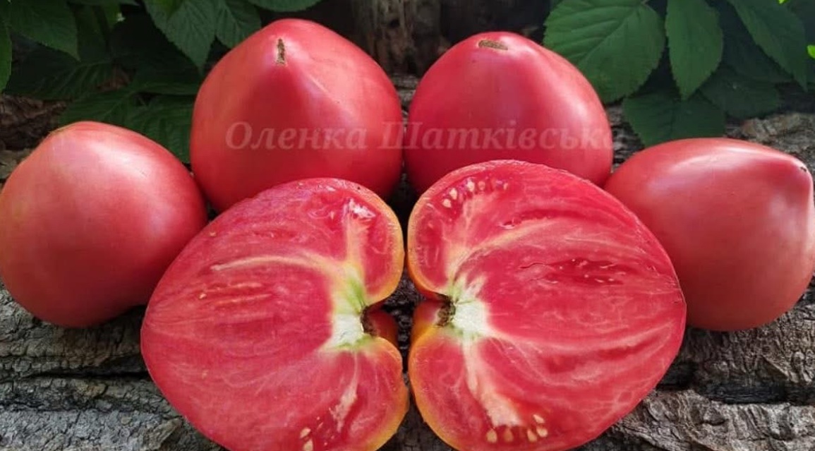 Середньорослий, середньостиглий, кущ 1,5 м. Плоди великі, загострені серця, вагою 250-450 г. рожевого кольору. Смак солодкий, дуже смачні та гарні. Для свіжого споживання, салатів, переробки на зиму.